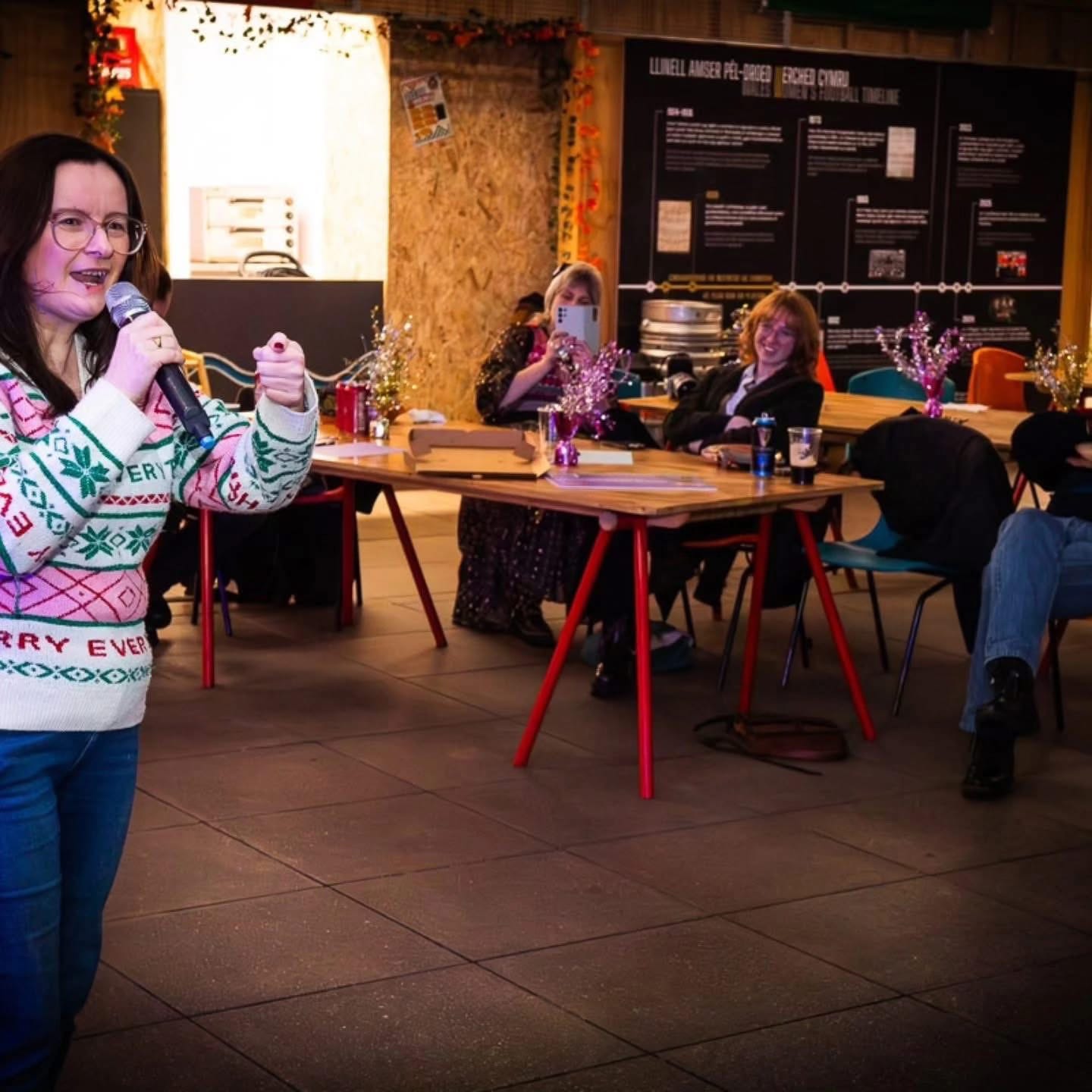 In the meantime, here is a photo of an impromptu performance recently at Ty Pawb in Wrexham. In preparation for Wrexham’s bid for the City of Culture 2029 the Bid team are doing a series of community conversations, in different settings and different communities, canvassing as many voices as possible about what they would love as part of the programme and it’s legacy. This one was a ‘Arty Farty Christmas Party’ and was a lovely mix of conversation and the best karaoke I have ever heard. The local poetry night (Voicebox) host was leading part of the conversation and invited me up to perform. Luckily I had one in my head and it is one that I know makes people laugh so was a good poem for the room we were in. It had been a big deal just getting out of the house to be there and to get that little moment to let my inner poet shine was a true Christmas treat. I will also be writing more about the Wrexham bid as I have volunteered as one of their advisers. Not as a poet, but using the skills of my day job (sorry if you were under illusion I am making a full time living from poetry, although it does help me to live a better life.). My day job involves numbers, form filling, admin, spreadsheets, report writing. And behind every big cultural programme someone needs to help with all that and I have offered what I can there, with the heart of someone who knows creativity and culture is something that belongs to everyone.